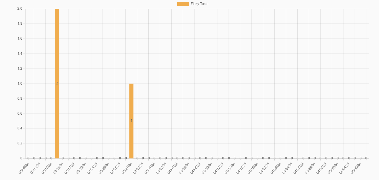 Here you can filter on multiple fields and get some stats on your flaky tests. This is especially useful to identify which tests are flaky and tracking trends over time.