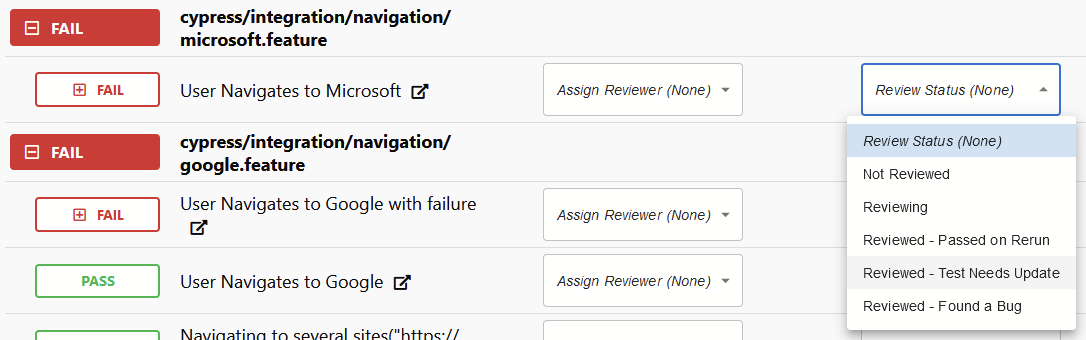 Now you can create a Jira Issue by choosing any Review Status on any test under a test runs details. You will then be prompted to create an issue if you wish.