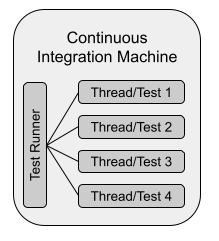 When a testing framework manages the parallelization, a common setup is like the following diagram: