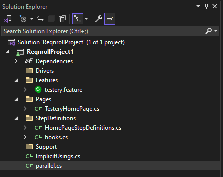 Now let's make a step definition for the feature under the StepDefinitions directory.