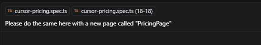 A new file tests\cursor-pricing.spec.ts was generated with the following code: